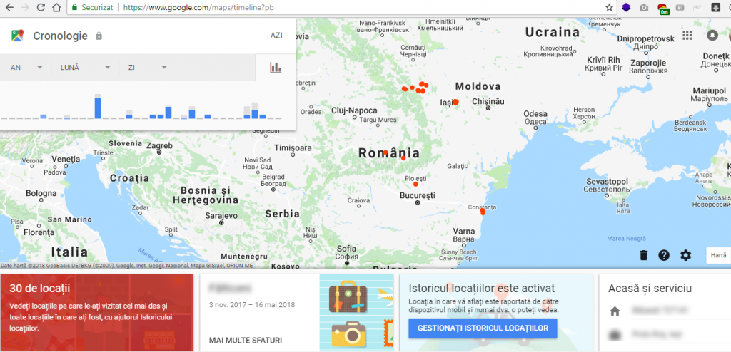 - Istoricul locațiilor salvate de Google: https://www.google.com/maps/timeline?pb